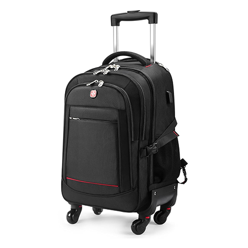 ● Built-In USB Charging Port: Stay connected on the go with our roller backpack’s built-in USB charging port. Featuring a dedicated internal pocket for your power bank, this rolling backpack for adults ensures your devices are always charged, making it a perfect companion for business trips or vacations.