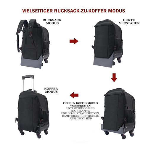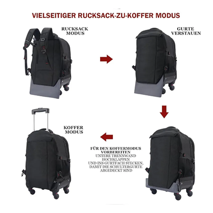 ● Durable and Replaceable Wheels for Longevity: Our 22-inch rolling backpack is designed with replaceable wheels, making it perfect for long-term use. Whether you’re navigating through city streets or airport terminals, the ability to easily replace wheels ensures your backpack stays functional and reliable, enhancing its durability and lifespan.