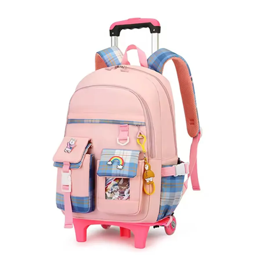 Kids School Waterproof Trolley Bag-004(Pink)