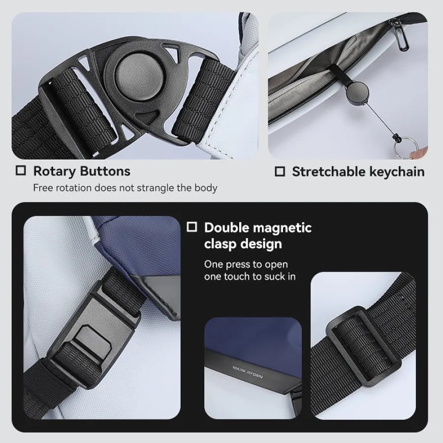 • Design: The shoulder straps on both sides of the bag are equipped with rotatable buttons + flip double magnetic buckle design + Japanese word anti-slip buckle on the shoulder strap, which is comfortable and non-slip, and easy to use;