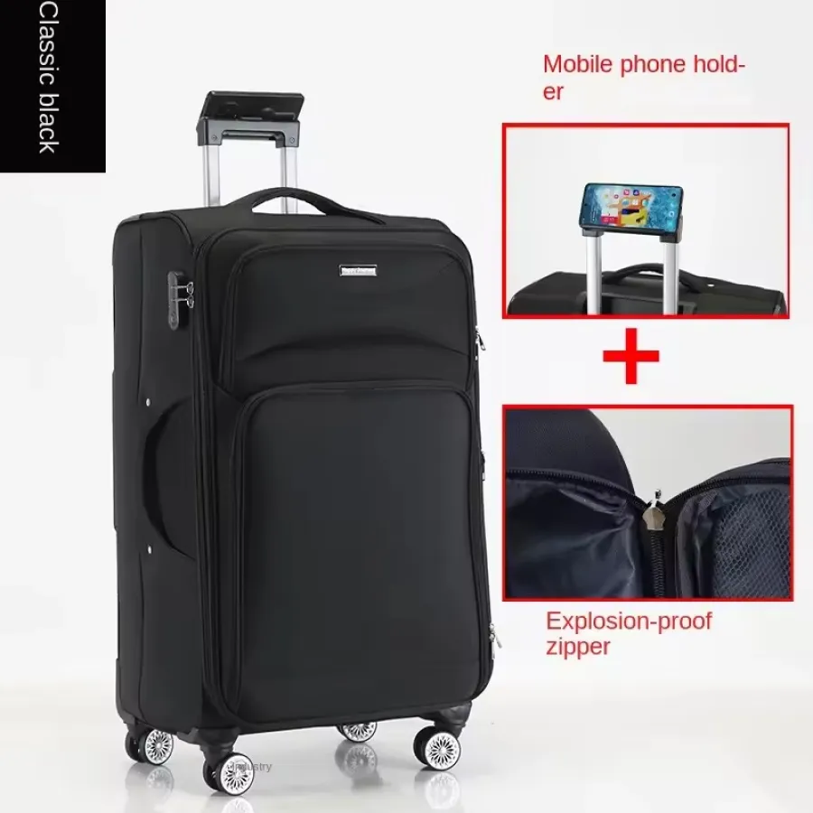TEXUS High Quality Nylon Fabric & Zipper Waterproof and Washable Trolley Luggage-008(Black)
