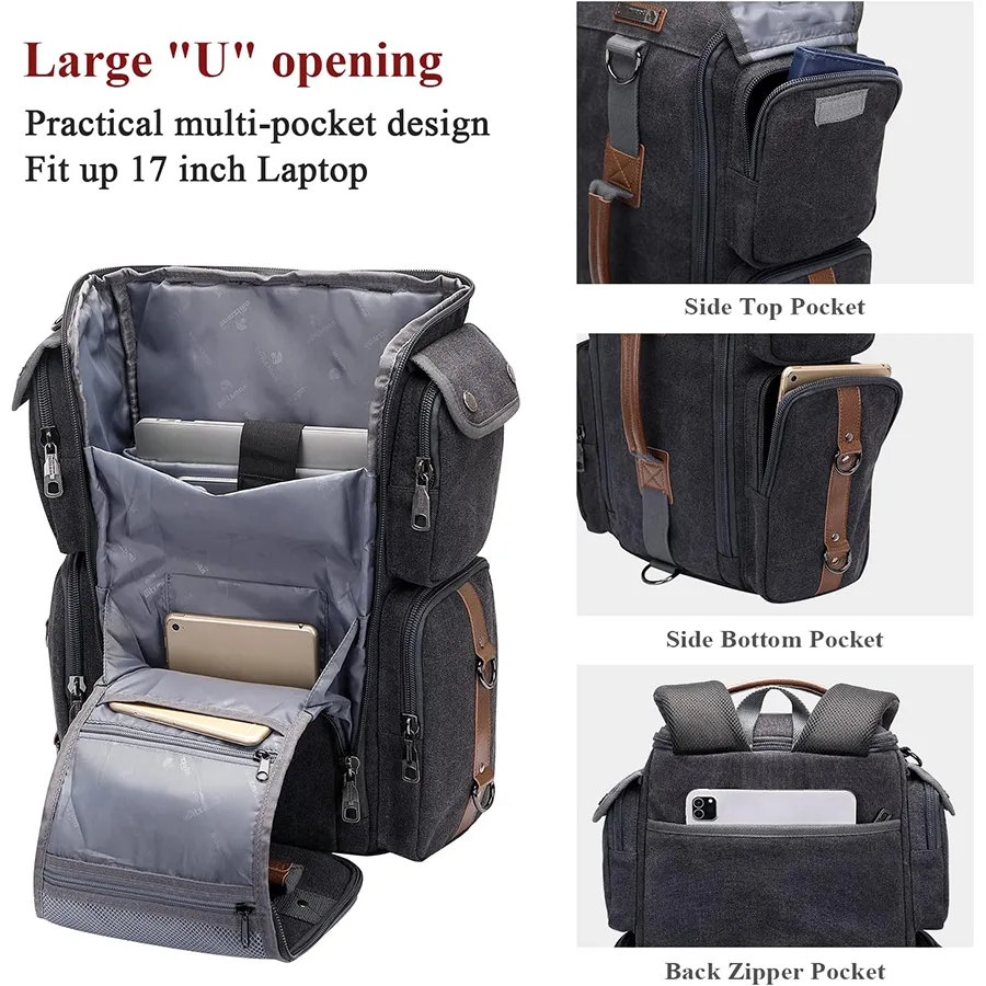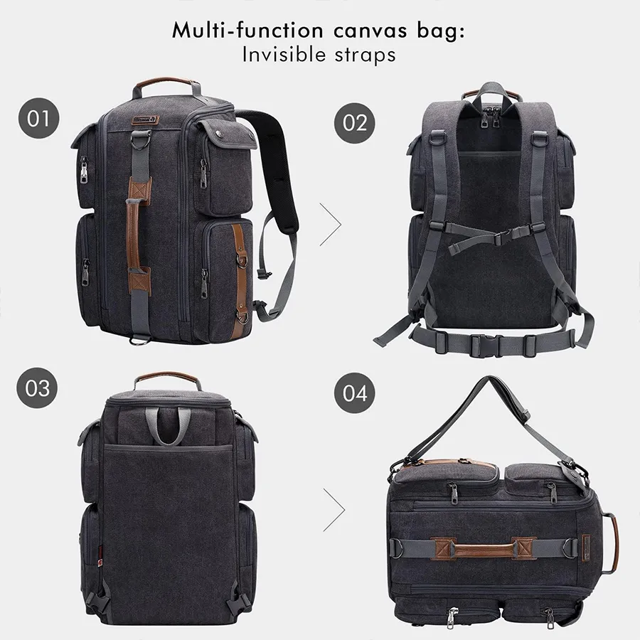 • Multifunctional Backpack: This traveler backpack come with a removable and adjustalbe shoulder strap. The backpack straps can be hidden in the back compartment. You can easily convert it into a duffel bag, crossbody bag, shoulder bag, tote bag