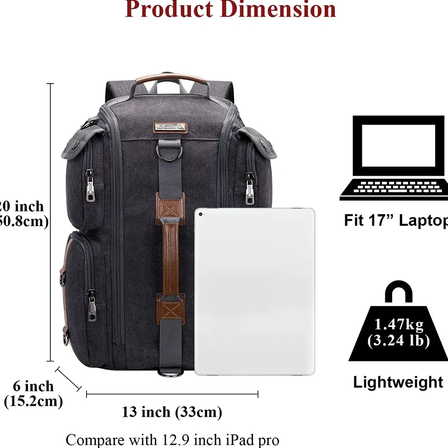 • Large Capacity: This men rucksack for large storage and organization for small items. The main spacious compartment for supplies, travel accessories, clothes, sunder. Versatility pockets to keep your items organized and easy to find.Suitability for travel gifts with men women who like international travel, camping, hiking and overnight trip.